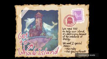 Dive into a whimsical journey to Whale Island! Help Raya as she travels across forests and swamps after receiving a mysterious postcard from a faraway castle. Its land is being destroyed and Raya must collect magical cures to protect it. But be careful! She can only hold three things in her memory, and the cures each take up one of these spots. Move with the arrow keys to avoid dangerous water and collect the cures. Can you save the decaying island before it’s too late?